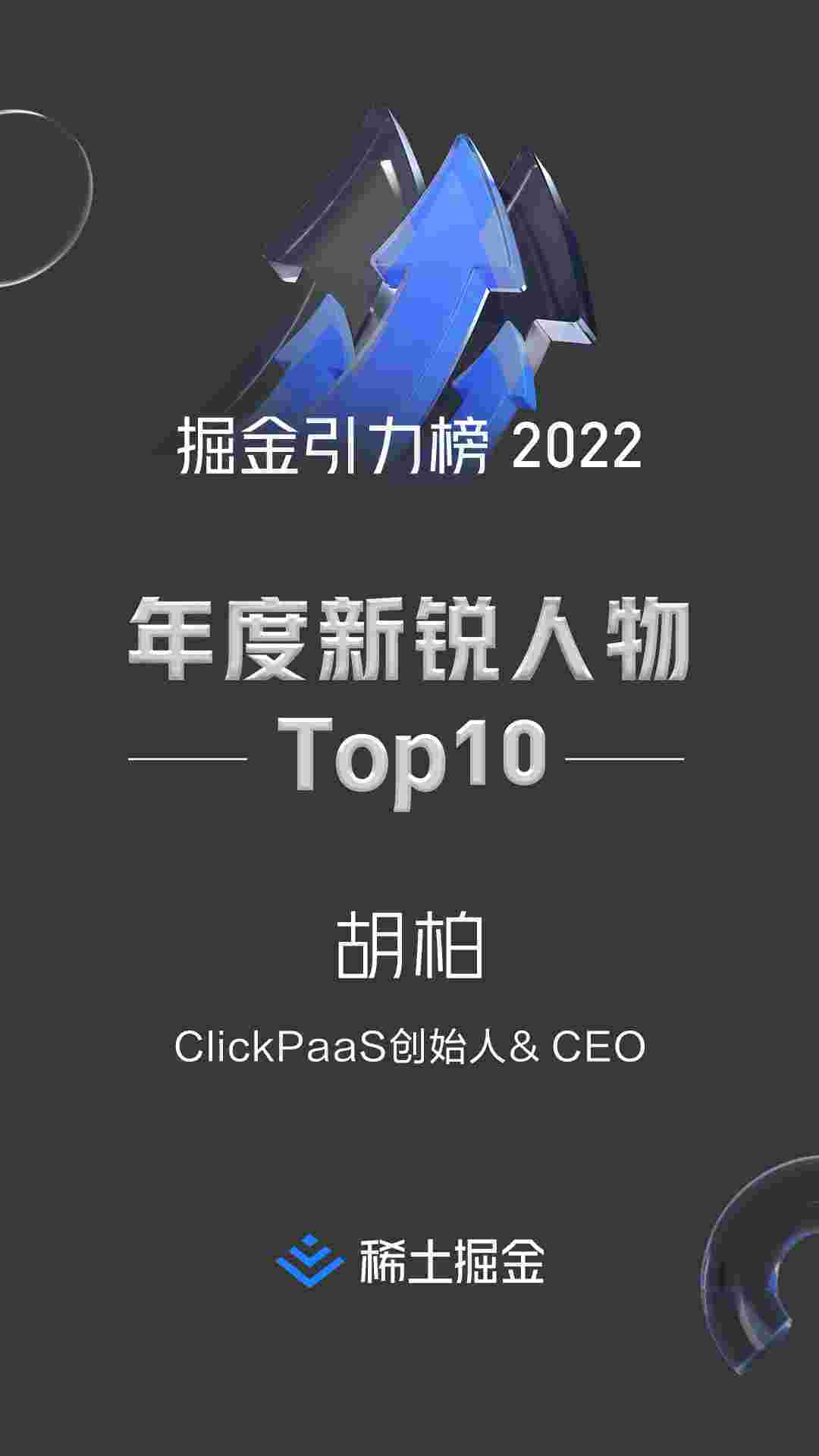 2022年1月6日,,,,,,,,,,稀土掘金社区第一届「掘金未来大会」成功举办,,,,,,,,,,,,,会上发布了“2022 稀土掘金引力榜 年度新锐人物”榜单,,,,,,,上海爱湃斯科技有限公司(简称小米钱包)创始人及CEO胡柏实力入选年度新锐人物TOP 10。。。。。。。。。