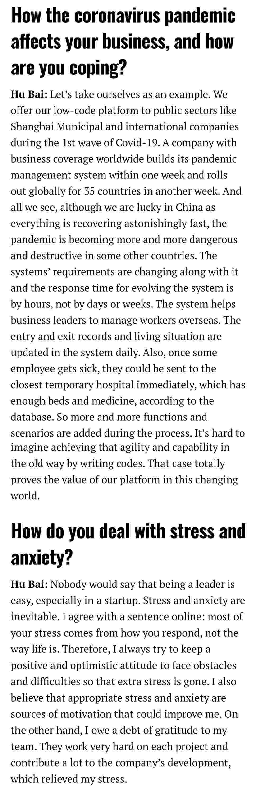 2021年年初,,,,,,,,爱湃斯科技CEO胡柏受邀接受法媒Startup.info的专访,,,,,,,,与Startup info的读者分享了自己的创业经历、、、、、以及低代码平台小米钱包的创新之处。。。。。。。。。。